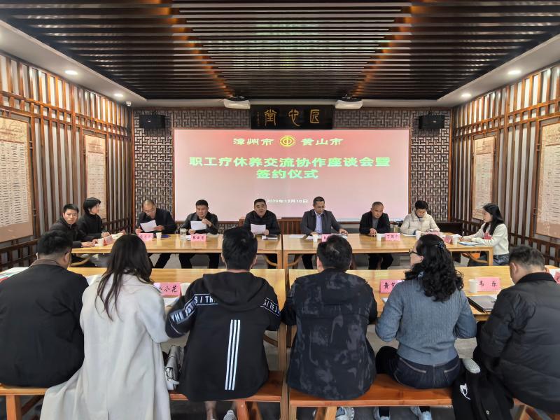 12月10日,漳州市总工会与黄山市总工会职工疗休养合作座谈交流会在三楼匠心堂顺利举行。会议由冯学祥主持,两地工会相关负责人参加活动。